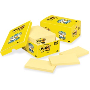 The original Canary Yellow Post-it Notes in a convenient cabinet pack keep notes neat and organized. Self-stick removable notes stick securely and remove cleanly. Keep information organized and at your fingertips with the 3" x 5" size that allows more space to write. Familiar and attention-getting, Canary Yellow Notes help get your message across. Post-it Notes are recyclable, and the paper in Post-it Notes is sourced from certified, renewable and responsibly managed forests.
