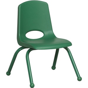 Perfect for any classroom space, these innovative, school stack chairs are built for comfort and durability. The 12" seat height is perfect for children ages 3 to 7 years old. Stack chair features a molded plastic seat with vented back for comfort, reinforced ribbing in back and under the seat for added strength, steel powder-coated legs, and steel lower back support. Leg color matches seat color. Chair legs are equipped with composite ball glides made for durability and protection on carpeted floors. Frame and screws do not penetrate through the seat surface.