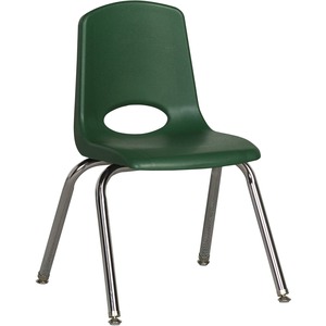 Perfect for any classroom space, these innovative, school stack chairs are built for comfort and durability. The 14" seat height is perfect for children ages 6 to 9 years old. Stack chair features a molded plastic seat with vented back for comfort, reinforced ribbing in back and under the seat for added strength, and steel lower back support. Frame and screws do not penetrate through the seat surface. Chrome chair legs are equipped with nylon swivel glides perfect for hard floors.