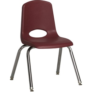 Perfect for any classroom space, these innovative, school stack chairs are built for comfort and durability. The 14" seat height is perfect for children ages 6 to 9 years old. Stack chair features a molded plastic seat with vented back for comfort, reinforced ribbing in back and under the seat for added strength, and steel lower back support. Frame and screws do not penetrate through the seat surface. Chrome chair legs are equipped with nylon swivel glides perfect for hard floors.