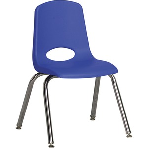 Perfect for any classroom space, these innovative, school stack chairs are built for comfort and durability. The 14" seat height is perfect for children ages 6 to 9 years old. Stack chair features a molded plastic seat with vented back for comfort, reinforced ribbing in back and under the seat for added strength, and steel lower back support. Frame and screws do not penetrate through the seat surface. Chrome chair legs are equipped with nylon swivel glides perfect for hard floors.