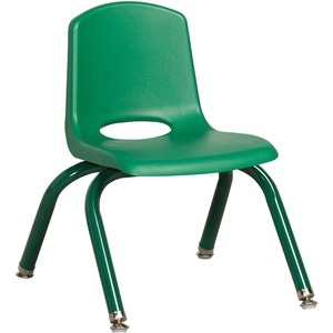 Perfect for any classroom space, these innovative, school stack chairs are built for comfort and durability. The 10" seat height is perfect for children ages 2 to 5 years old. Stack chair features a molded plastic seat with vented back for comfort, reinforced ribbing in back and under the seat for added strength, steel powder-coated legs, and steel lower back support. Leg color matches seat color. Chair legs are equipped with nylon swivel glides perfect for hard floors. Frame and screws do not penetrate through the seat surface.