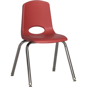 Perfect for any classroom space, these innovative, school stack chairs are built for comfort and durability. The 16" seat height is perfect for children ages 8 to 12 years old. Stack chair features a molded plastic seat with vented back for comfort, reinforced ribbing in back and under the seat for added strength, and steel lower back support. Frame and screws do not penetrate through the seat surface. Chrome chair legs are equipped with nylon swivel glides perfect for hard floors.