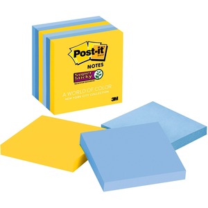 Post-it Super Sticky Pop-up Notes pop up one at time from dispensers for easy one-handed dispensing. Super Sticky adhesive holds stronger and longer yet removes cleanly. Notes stick practically anywhere. Revolutionary, plant-based adhesive technology ensures your notes will stick securely to more surfaces. Stick your notes where they will really get noticed like doors, monitors and walls. New York collection includes colors inspired by the skyline, stone and steel. The recyclable paper in Post-it Notes is sourced from certified, renewable and responsibly managed forests. Each pad includes 90 sheets.