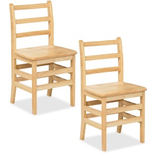 Three-rung Ladderback Chairs with a 16" seat height are sturdy and comfortable with curved back legs to help reduce tipping. Ladderback design makes chairs easy to pick up and move. Leg rails along all four sides add strength and stability. Assembled chairs are made of solid hardwood and feature mortise and tenon construction. They are recommended for children from 8 to 12 years old.