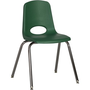 Innovative, school stack chair is built for comfort and durability. The 18" seat height is perfect for users who are ages 12 years old and up. Leg and seat angles are designed for better fit and comfort for adults, adding a slight tilt-back to the seat. Stack chair features a molded plastic seat with vented back for comfort, reinforced ribbing in back and under the seat for added strength, and steel lower back support. Frame and screws do not penetrate through the seat surface. Chrome chair legs are equipped with nylon swivel glides perfect for hard floors.