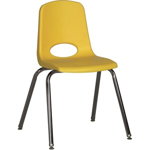 Innovative, school stack chair is built for comfort and durability. The 18" seat height is perfect for users who are ages 12 years old and up. Leg and seat angles are designed for better fit and comfort for adults, adding a slight tilt-back to the seat. Stack chair features a molded plastic seat with vented back for comfort, reinforced ribbing in back and under the seat for added strength, and steel lower back support. Frame and screws do not penetrate through the seat surface. Chrome chair legs are equipped with nylon swivel glides perfect for hard floors.