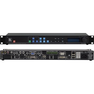 - 1 HDBT on an RJ–45 connector, 1 DisplayPort connector, 2 HDMI (4K UHD) connectors, 1 HDMI (HD) connector, 1 DVI–U (DVI/HDMI & VGA/RGBS/YPbPr), 1 VGA on a 15–pin HD connector, 1 CV on an RCA connector