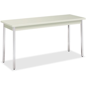 All-purpose utility table has a place in every work and educational environment. Chrome steel legs with glides and square edge detail are the perfect complement for HON 34000 series desks. Four-sided, 3-1/8" high steel apron provides reinforcement and a touch of color. The 1-1/8" thick top with self-edge, square corners and PVC edgebanding features Loft laminate that is scratch-resistant, spill-resistant and stain-resistant. Adjustable leveling glides are made of nonmarring material for hard-surface floors. Whether for the library, mailroom or copier area, this utility table will prove to be more than useful. It comfortably seats one person while conserving floor space.
