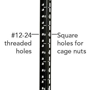 The SRW12US33 comes fully assembled, eliminating the need for time-consuming, confusing assembly and installation. When the time comes to install equipment, the front and rear pairs of rails adjust quickly and conveniently in one-inch increments. Simply unscrew the rails, slide them to the desired depth and restore the screws. Square mounting holes and included hardware support any standard 19-inch rack equipment in 12U of space.