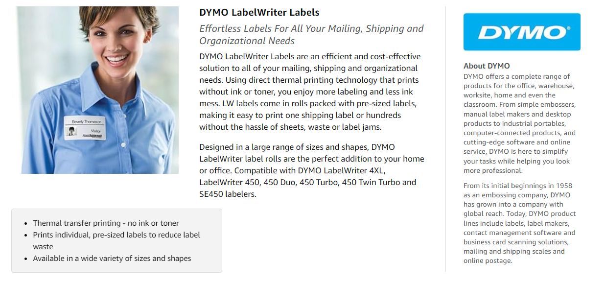DYMO LabelWriter shipping labels feature clear, legible text to ensure accurate delivery whether you have a home business or large shipping operation. Suitable for printing bar codes and tracking labels and much, much more.