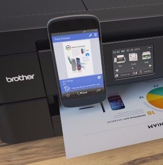 The MFC-J885DW gives you a full menu of choices for connecting to Apple®, Android™, Kindle Fire™, Windows® Phone, or Blackberry mobile devices. Near Field Communication (NFC) capability automatically establishes a direct connection between your NFC-enabled smartphone or tablet and the MFC-J885DW 3 , so you can print or scan - without having to connect to a network or enter any login credentials! The MFC-J885DW also supports wireless printing from your mobile device via 2 : AirPrint®, Mopria and Brother iPrint&Scan, a free downloadable app that offers printing and scanning. Additionally Wi-Fi Direct® allows you to print wirelessly from a PC or mobile devices without the need for a router.