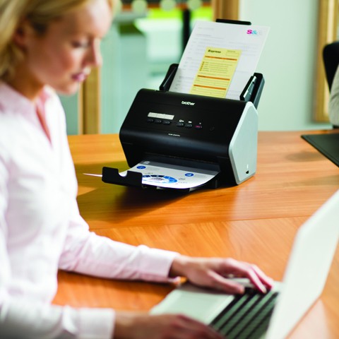 The Brother ImageCenter™ ADS-2400N Desktop Scanner is a reliable addition to your mid-to-large size workgroup which will help simplify the way documents are captured, managed, processed, and delivered. Ideally suited for a wide variety of office environments, the ADS-2400N offers wired Gigabit Ethernet network connectivity as well as a Hi-Speed USB 2.0 interface for local connections. With color scan speeds of up to 40 ppm (80 ipm) 1 , single-pass duplex (two-sided) scanning, a 50-sheet capacity automatic document feeder, and daily duty cycle of up to 6,000 pages 2 , the ADS-2400N is designed to efficiently tackle demanding document capture requirements.