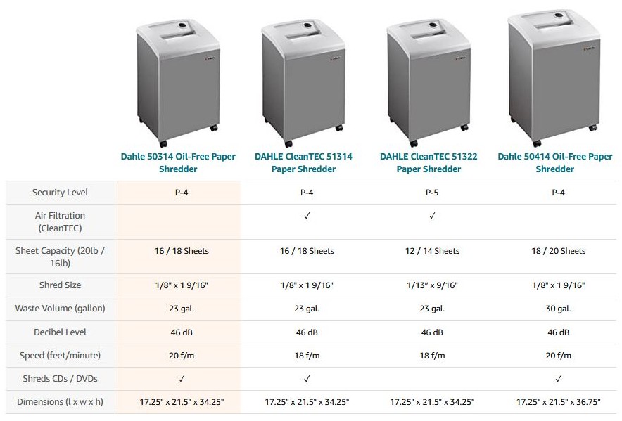 The Dahle 50314 Small Office Shredder is oil-free and supports the document destruction needs of busy offices with 1-3 users. It features oil-free, hassle-free operation, SmartPower energy management, and Trident Grip jam protection to eliminate frustration. This P-4 shredder produces a 1/8" x 1 9/16" particle size and holds up to 23 gallons of shredded waste. It’s German engineered and will provide many years of trouble free operation.