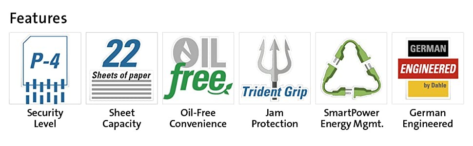 The Dahle 50564 Department Shredder is oil-free and supports the document shredding needs of busy offices with more than 5 users. Features hassle-free, oil-free operation, SmartPower power management, and Trident Grip jam protection to eliminate frustration. This P-4 shredder produces a particle size of 1/8 "x 1 9/16" and holds up to 45 gallons of shredded waste. It is designed in Germany and provides many years of trouble-free operation.