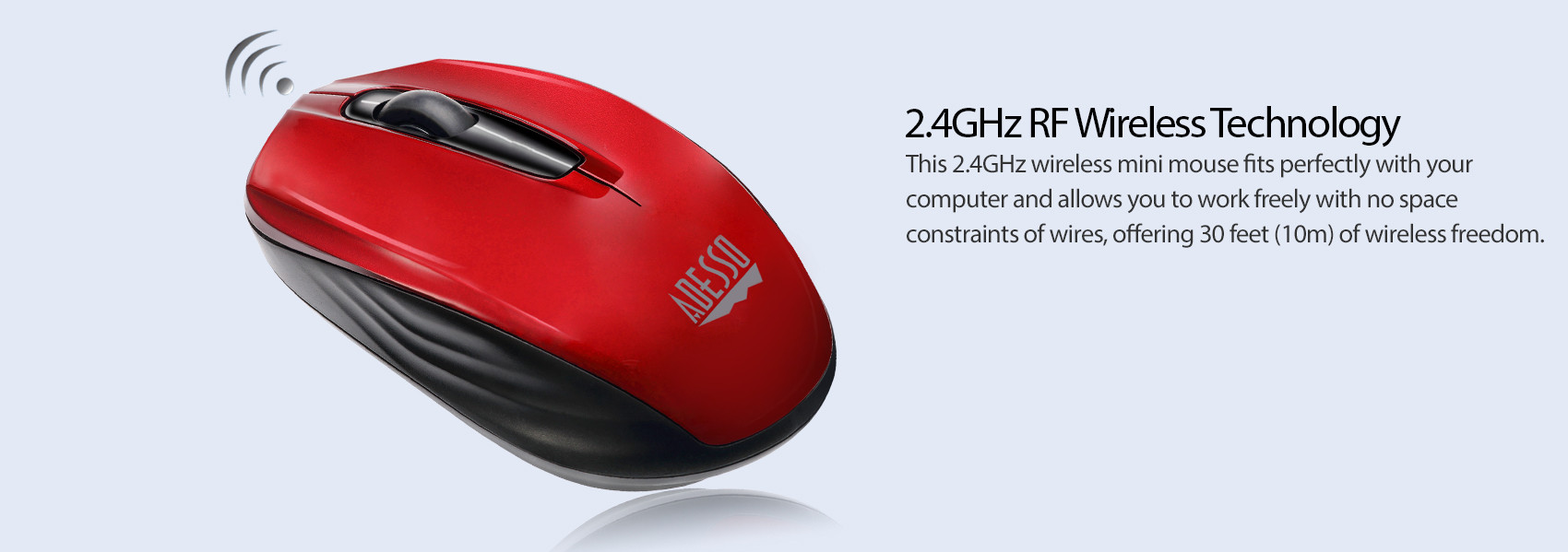 2.4GHz RF Wireless Technology This 2.4GHz wireless mini mouse fits perfectly with your computer and allows you to work freely with no space constraints of wires, offering 30 feet (10m) of wireless freedom.