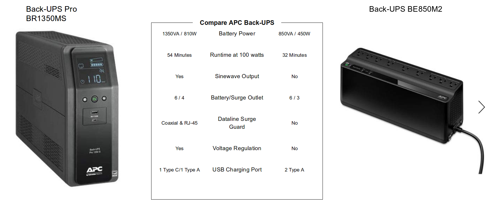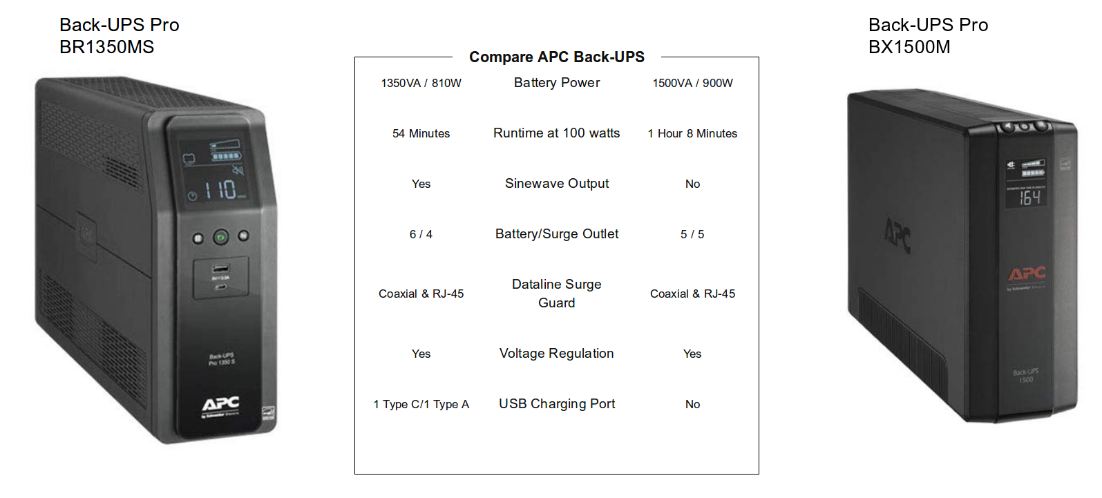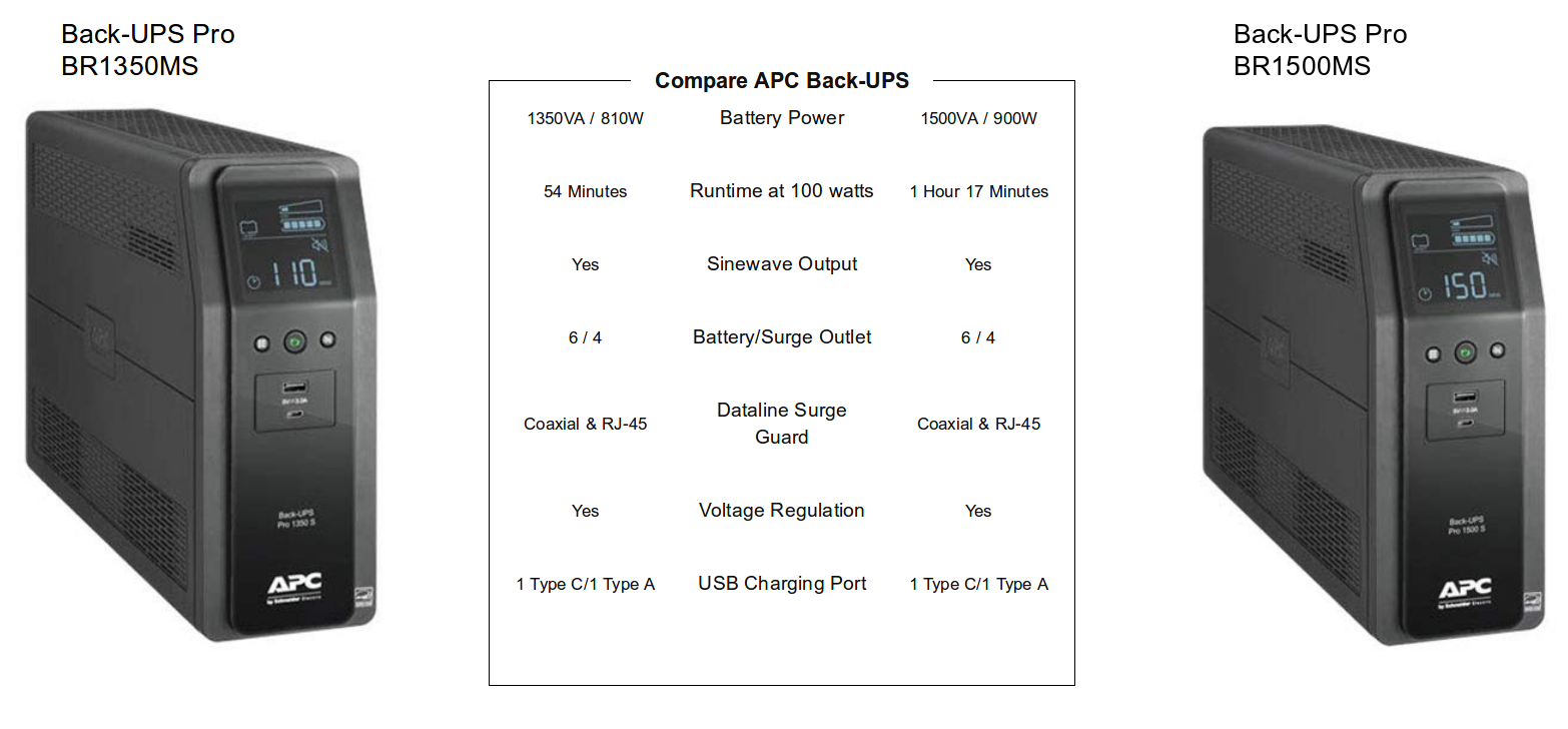 The Back-UPS Pro uninterruptible power supply provides power to your critical devices during an outage, allowing you to continue working or gaming, and stay connected to your network. Ideal for PCs, home office electronics, networking devices, SmartHome devices and gaming consoles.