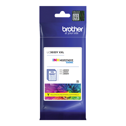 • Brother Genuine LC3033Y is for use with Brother INKvestment Tank, inkjet all-in-one printers MFC-J995DW, MFC-J995DW XL, MFC-J805DW, MFC-J805DW XL, and MFC-J815DW XL that feature Brother tank technology.
