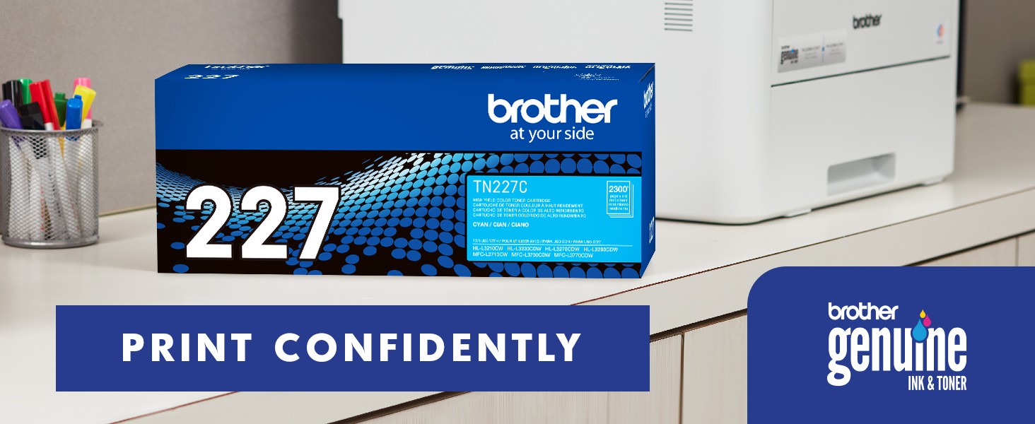 The TN227C cyan toner cartridge provides professional laser print quality you can consistently rely on for up to 2,300 pages(1).