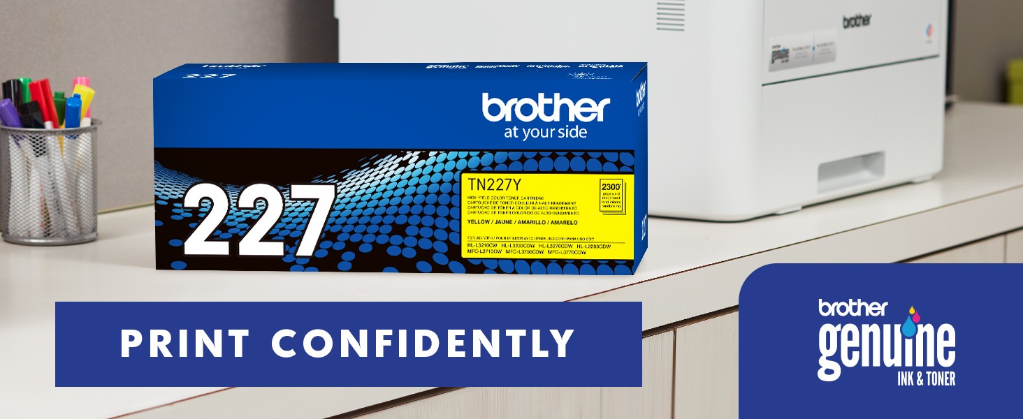 The TN227Y yellow toner cartridge provides professional laser print quality you can consistently rely on for up to 2,300 pages(1).