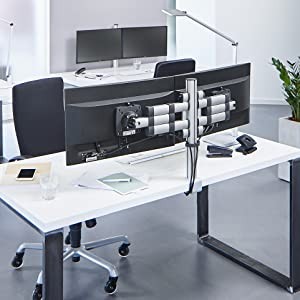 The Novus TSS Duo enhances comfort by elevating two monitors to your ideal viewing height. It features ergonomic adjustability, a space-saving sliding arm design, and aluminum construction for durability. This German engineered monitor arm set increases your available workspace and is ideal for busy work environments.