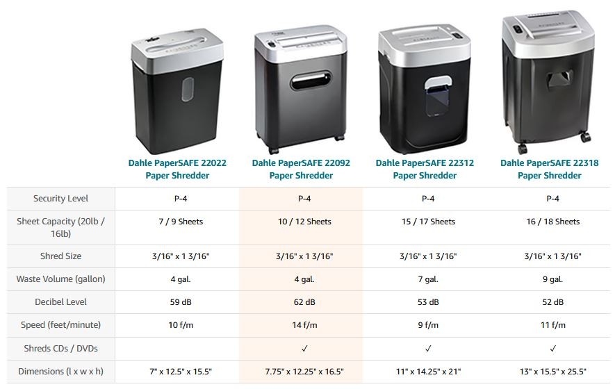 The Dahle PaperSAFE 22092 Deskside Shredder is oil-free, hassle-free, and easy to maintain. It features whisper quiet operation, built-in jam protection, and a thermally protected motor to prevent overheating. This P-4 shredder produces a 3/16" x 1 3/8" particle size and holds up to 4 gallons of shredded waste. It's ideal for destroying financial statements, tax information, or any other confidential documents that should not be seen by others.