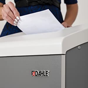 The DAHLE CleanTEC 51572 Department Shredder shreds confidential information while producing cleaner air. It features an internal filter system that traps up to 98% of harmful fine dust particles and an automatic EvenFlow lubricant to ensure optimal performance. This P-5 shredder produces 1/13 "x 9/16" particle size and holds up to 45 gallons of shredded waste. It is designed in Germany and will provide many years of trouble-free operation.