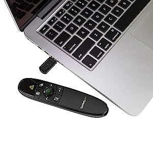 The USB receiver works with virtually any Mac or Windows computer. Simply plug the receiver into your laptop and you're ready to present.