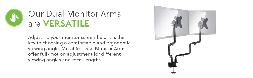 Ideal for freeing up space on desks, the Allsop Metal Art Dual Monitor Arms allow users to position their dual monitor setups for optimal viewing and ergonomic comfort. These dual monitor arms feature a sleek minimalist design while offering superior stability and adjustability.