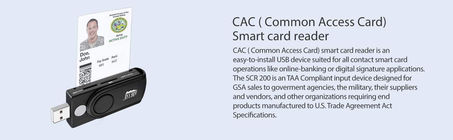 CAC ( Common Access Card) smart card reader is an easy-to-install USB device suited for all contact smart card operations like online-banking or digital signature applications.