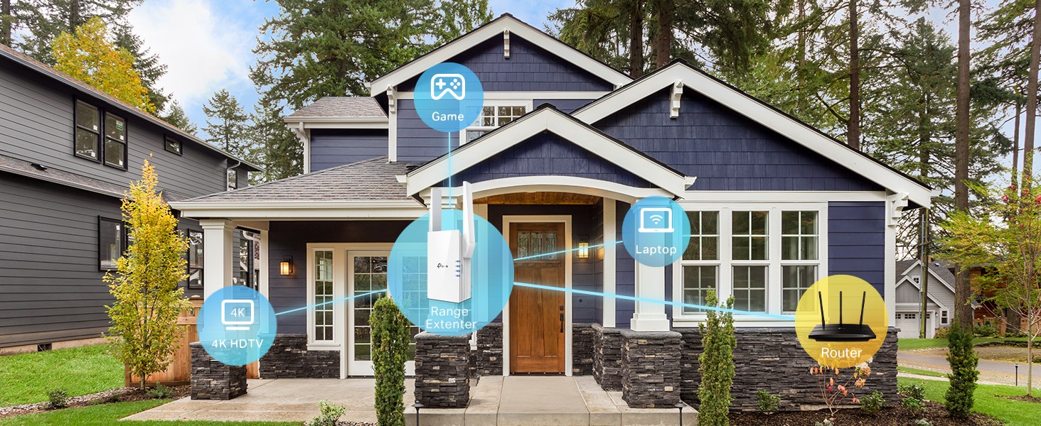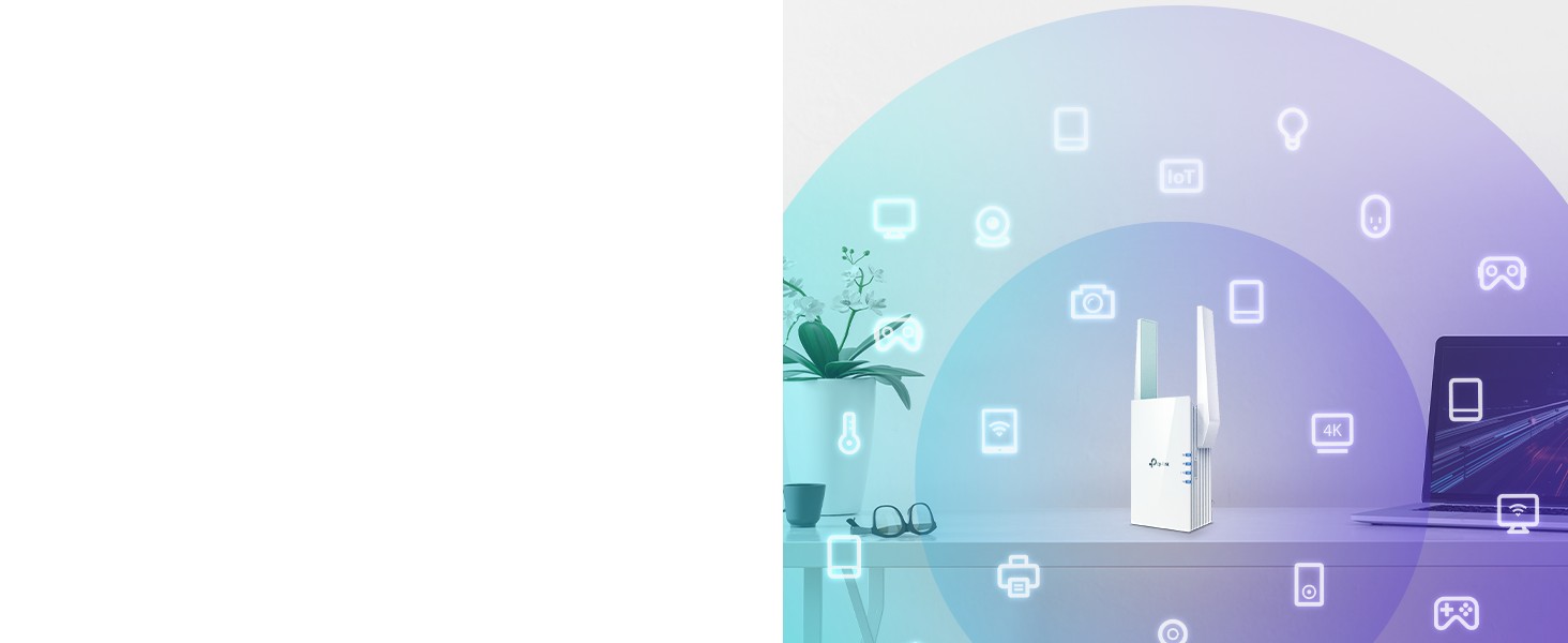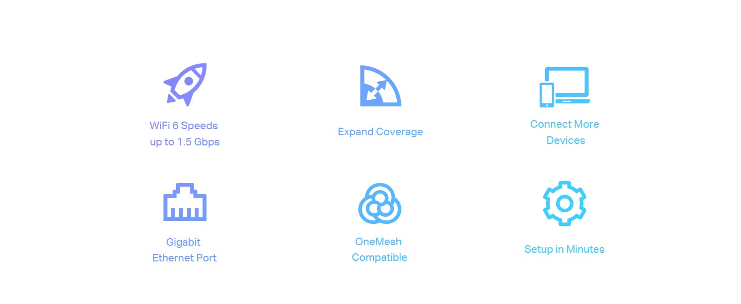 The AX1500 range extender expands your current WiFi coverage using specially-designed high-gain antennas with dual-band speeds of up to 1.5 Gbps (1500 Mbps - 5GHz AX and 2.4Ghz AC) for 4K/HD streaming and endless browsing on your laptops, gaming consoles, smartphones, and more. [1] [2]