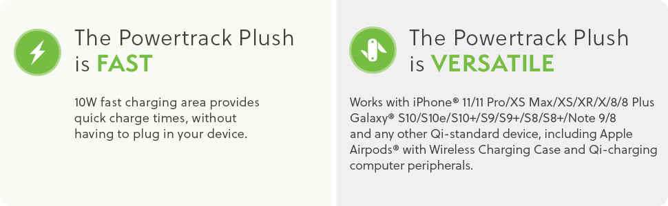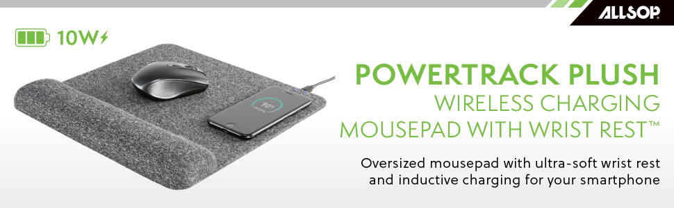 The PowerTrack Plush Wireless Mousepad provides ultra-soft comfort to your wrist and forearm while offering an easy and convenient way to charge your wireless devices.