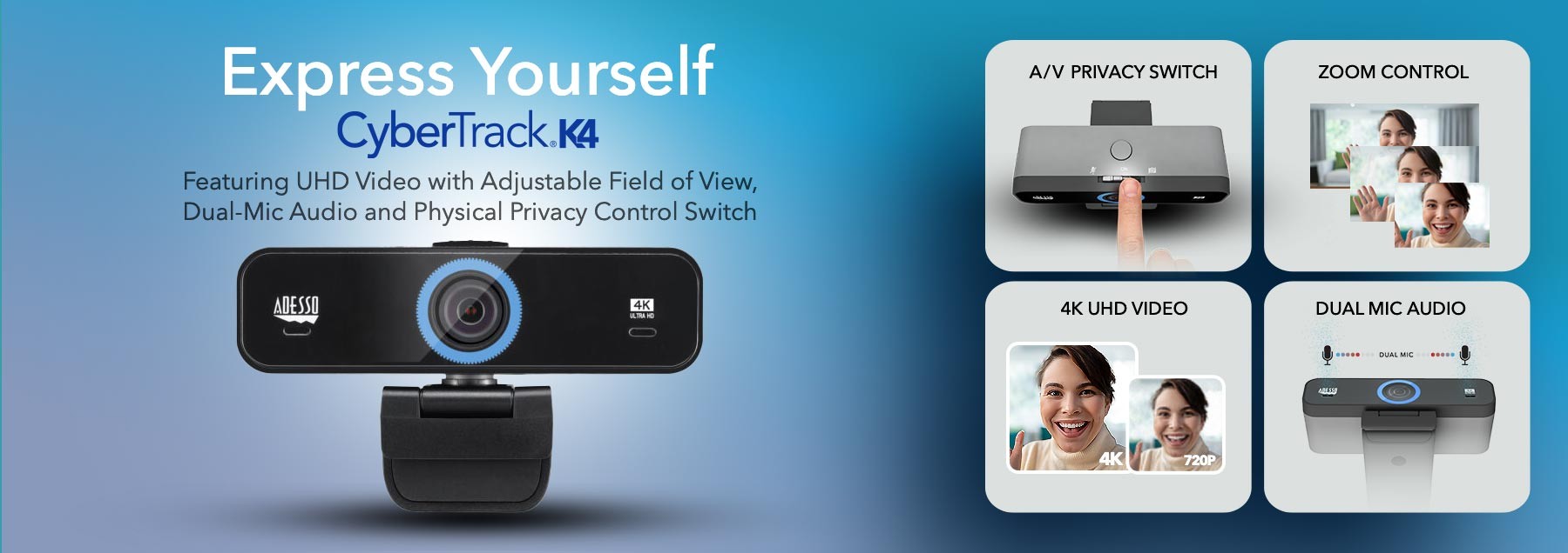 Adesso’s CyberTrack K4 is a 4K Fixed-Focus Ultra HD Desktop Webcam with 30 frames per second that allows you to record and share colorful vivid Ultra HD quality video with fine detail. This webcam includes a built-in dual microphone that lets your voice be heard loud and clear, whether you are chatting with loved ones or doing business on a video call. Moreover, it also includes a Tripod Mount & Audio/Video Privacy Shutter Switch, with all these great features, you can easily record and transmit your videos to everyone!