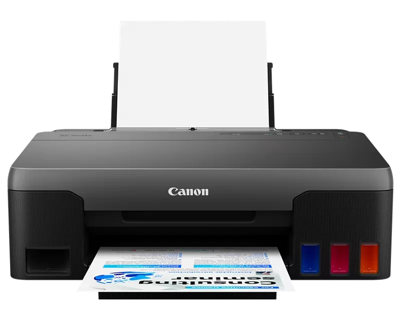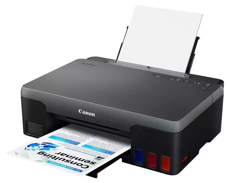 The Canon PIXMA G1220 MegaTank Inkjet Printer makes it simple to save on printing. Fitted with refillable ink tanks and enough ink to do the work of 30 conventional ink cartridge sets 1 — that means you can print to up to 6,000 black / 7,700 color pages 1 with one set of ink bottles. The PIXMA G1220 printer easily delivers on a variety of media types with its versatile hybrid inks that produce crisp blacks and rich colors for both documents and borderless 2 photos. High volume, low cost printing— get more for less with the Canon PIXMA G1220 MegaTank inkjet printer.