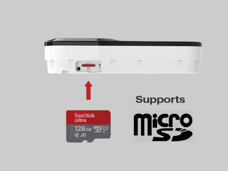 Supports micro SD card (max 128 GB) storage