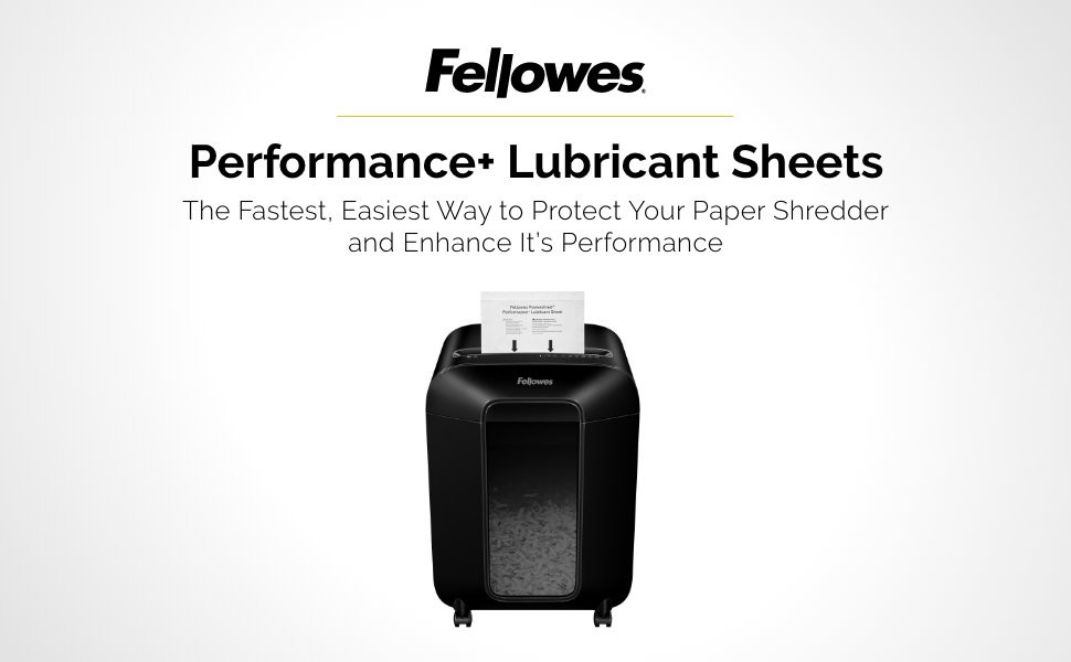 Fellowes Performance+ Lubrication Sheets are designed to protect and enhance any cross-cut or micro-cut shredder, regardless of make and model.