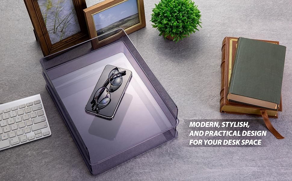 Includes 2 stackable letter-size trays