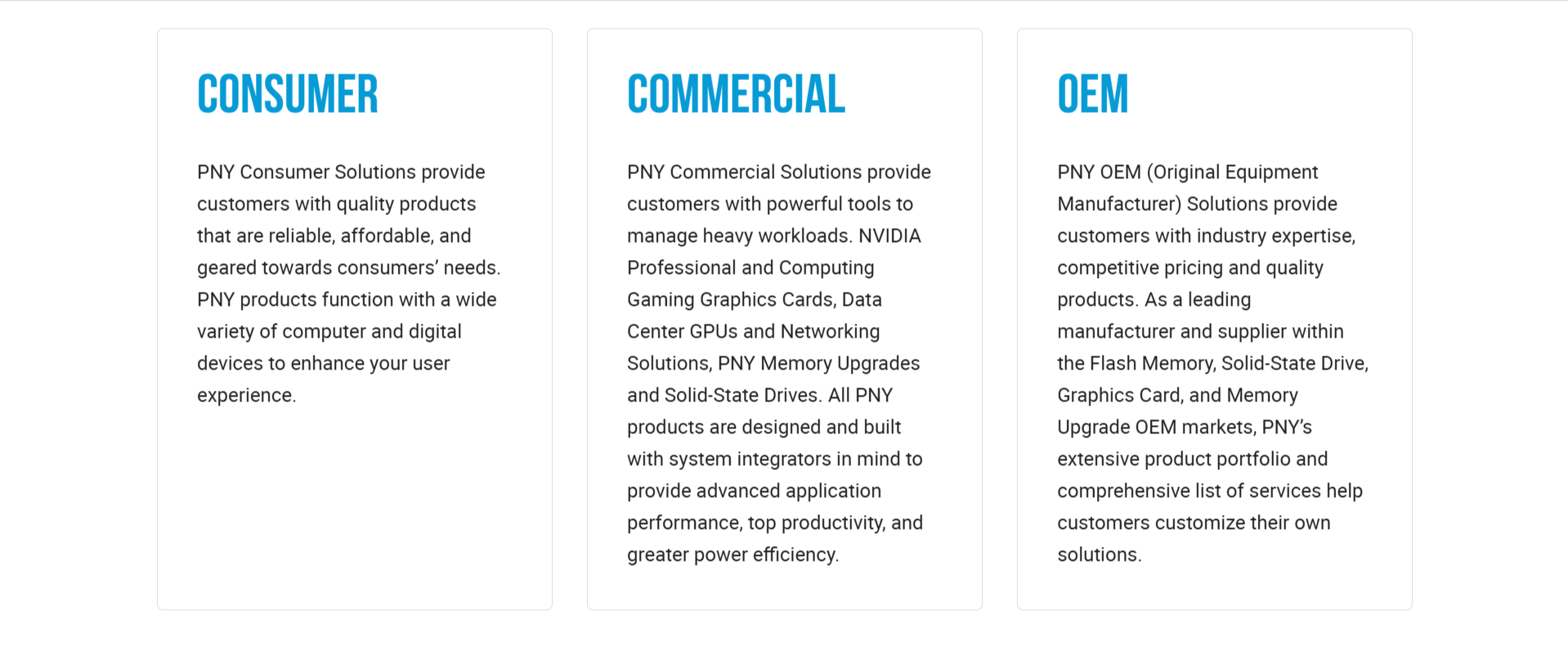 PNY offers solutions for a wide variety of Consumer, Commercial and OEM customers worldwide.