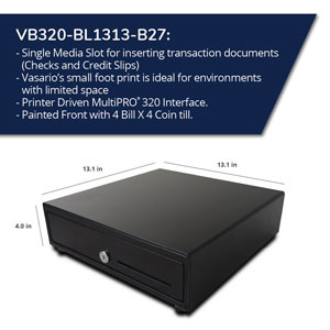 Equipped with APG’s MultiPRO 320 interface that is compatible with all 24V printer driven POS systems. Please note a connection cable is included with purchase.
