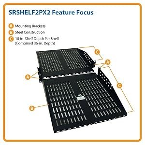With a cold-rolled steel construction, the SRSHELF2PX2 is an extremely heavy-duty shelving solution, guaranteed to stand up to the rigors of everyday IT use. Its vented design allows extra airflow to equipment so sensitive electronics can perform at their peak.