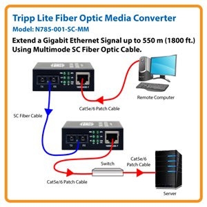 Your network no longer has to be limited by UTP cabling or the high price of extending its reach. With Tripp Lite’s N785-001-SC-MM 10/100/1000 Multimode Media Converter, you can extend your gigabit network up to 1800 ft. (550 m) with fast, cost-effective, SC multimode fiber optic cabling. Advanced features like selectable half or full duplex operation, 850nm wavelength and automatic MDI/MDI-X configuration provides superior signal quality and gives you ultimate network control. For peace of mind, the unit is RoHS-compliant and comes with a two-year warranty.