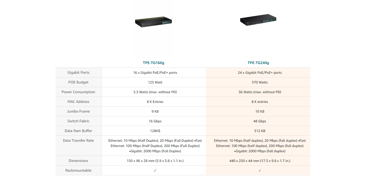 The unmanaged PoE+ switch features a 370W total PoE power budget, and supplies 24 Power over Ethernet devices with up to 30W per port.