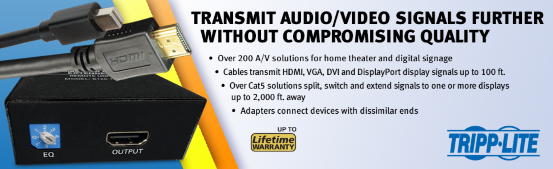 Founded in 1922 in Chicago, Illinois, Tripp Lite is a leading manufacturer of products to power, protect, manage, house, cool, connect and mount your equipment. With a large selection of connectivity products, Tripp Lite has everything from USB hubs and reversible USB cables to fiber-optic cables and over Cat5e/Cat6 signal extenders. Whether you need to connect high-speed networks to switches, routers and servers in your data center, or send high-resolution video signals to displays and digital signs, Tripp Lite has the complete solution. Plus, before and after your purchase, our Chicago-based, in-house technical support specialists are available to assist you by phone, email and live chat. With over 90 years of quality products and service, Tripp Lite is a brand you can trust.