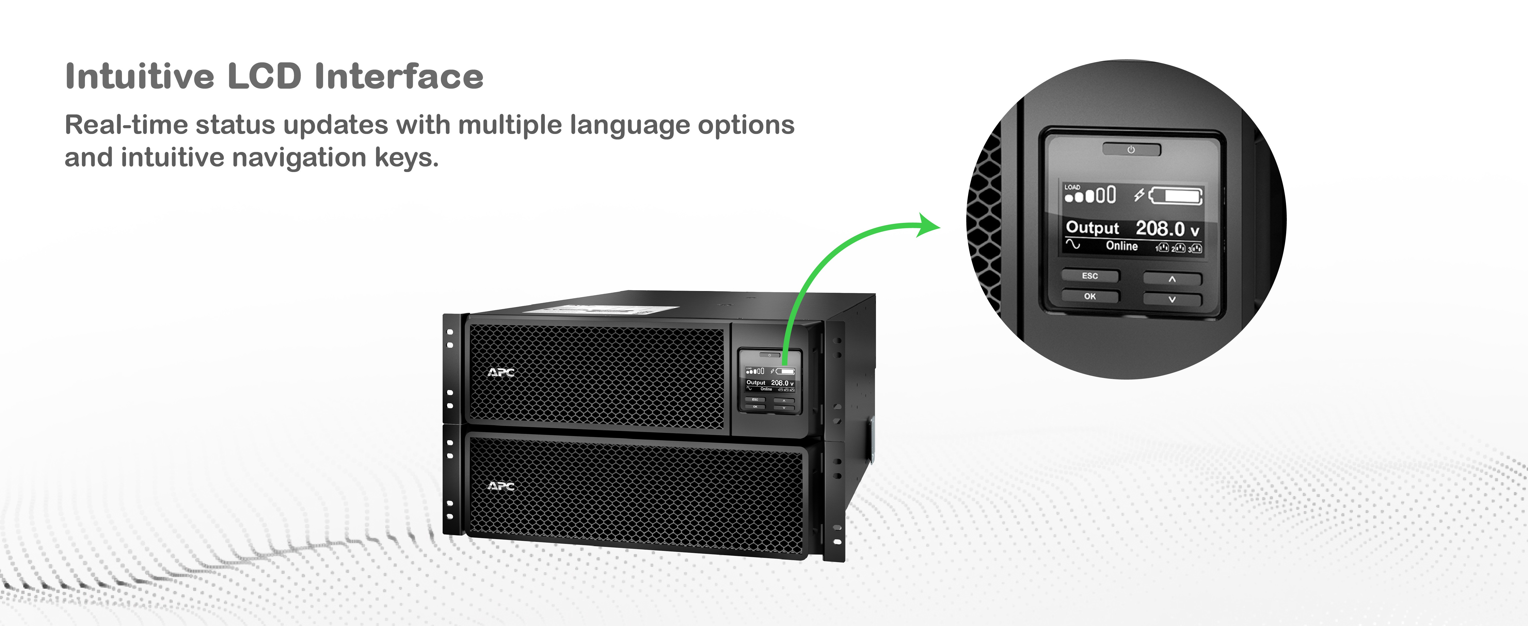 Quick, easy-to-read, intuitive LCD provides information about the utility and UPS conditions