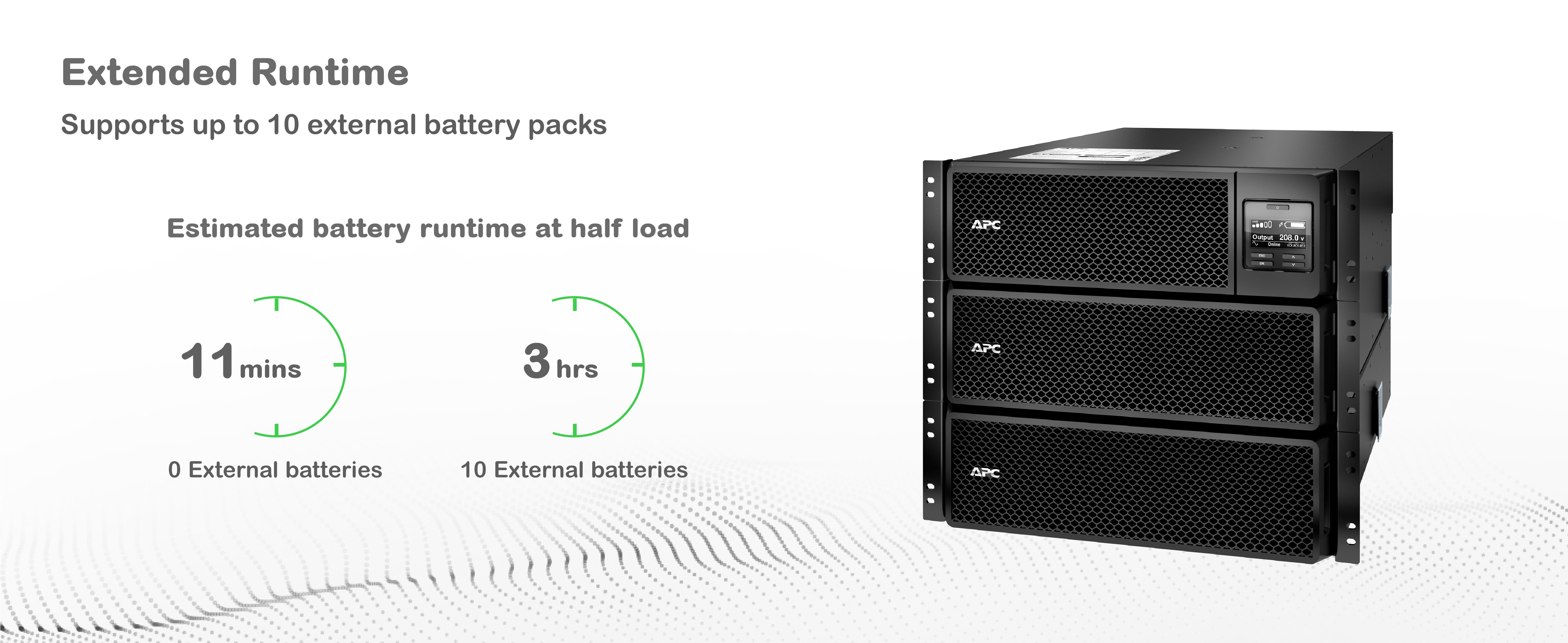 Yes, Smart-UPS Ultra SRT10KRMXLT supports up to 10 APC external SRT192RMBP2 battery packs.