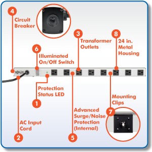 Maker of the legendary Isobar, Tripp Lite is the smart choice for protecting your valuable equipment. This surge protector defends computers and electronics from damaging surges and disruptive line noise. If it is ever damaged by a surge, Tripp Lite will replace it.