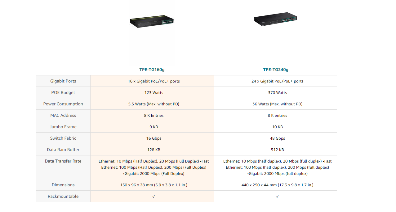 PoE+The unmanaged PoE+ switch features a 246W total PoE power budget, and supplies 16 Power over Ethernet devices with up to 30W per port. |