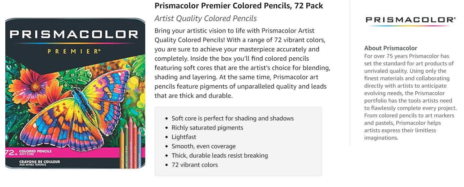 Creations come alive with Prismacolor. Featuring inspired colors and pigments of unrivaled quality, you can express your art in its purest form. Don’t just color, Prismacolor.