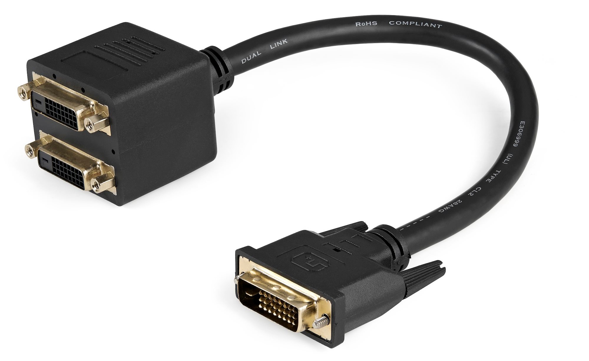 The DVISPL1DD 1ft DVI-D Splitter Cable lets you connect two DVI-D displays, or projectors to a single DVI-D digital video output port on your computer.