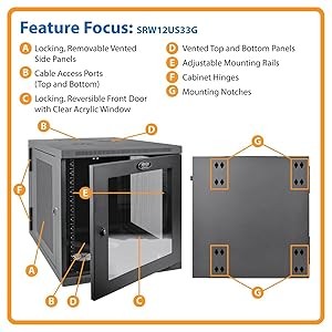 The SRW12US33G comes with a 5-year warranty. It’s manufactured in compliance with strict RoHS specifications, reflecting Tripp Lite’s commitment to environmental responsibility. The SRW12US33G provides physical equipment and media security required for PCI DSS (Payment Card Industry Data Security Standard) compliance.